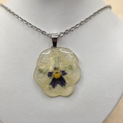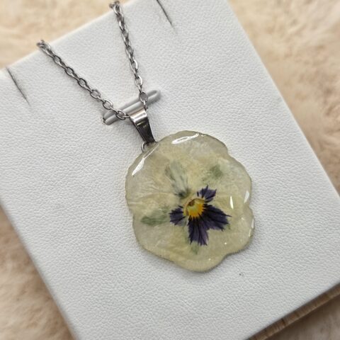 🌸 Pendentif Fleur de Pensée en Résine – Fait Main