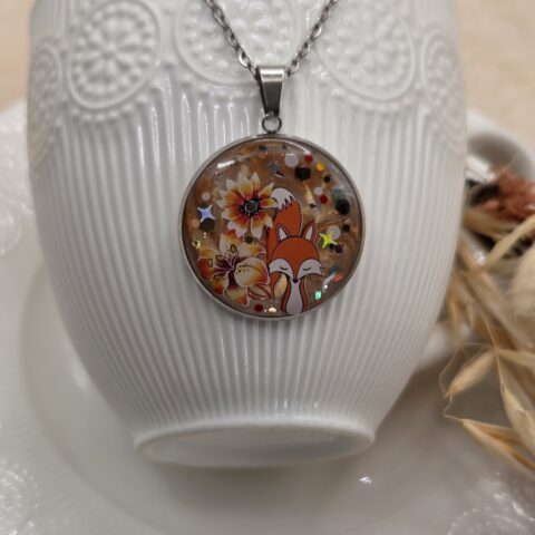 🦊 Pendentif « Renard d’Automne » – Cabochon 25 mm