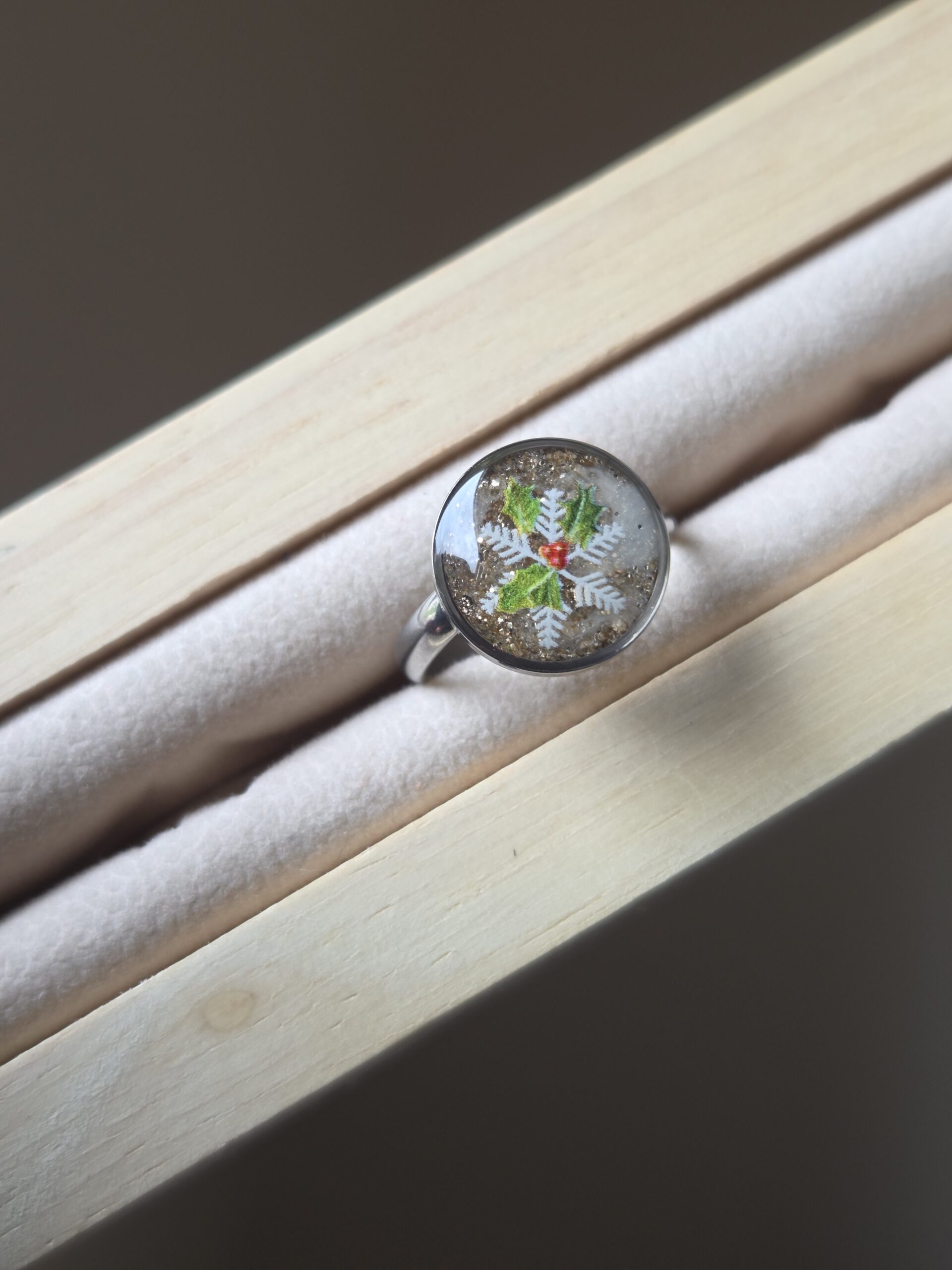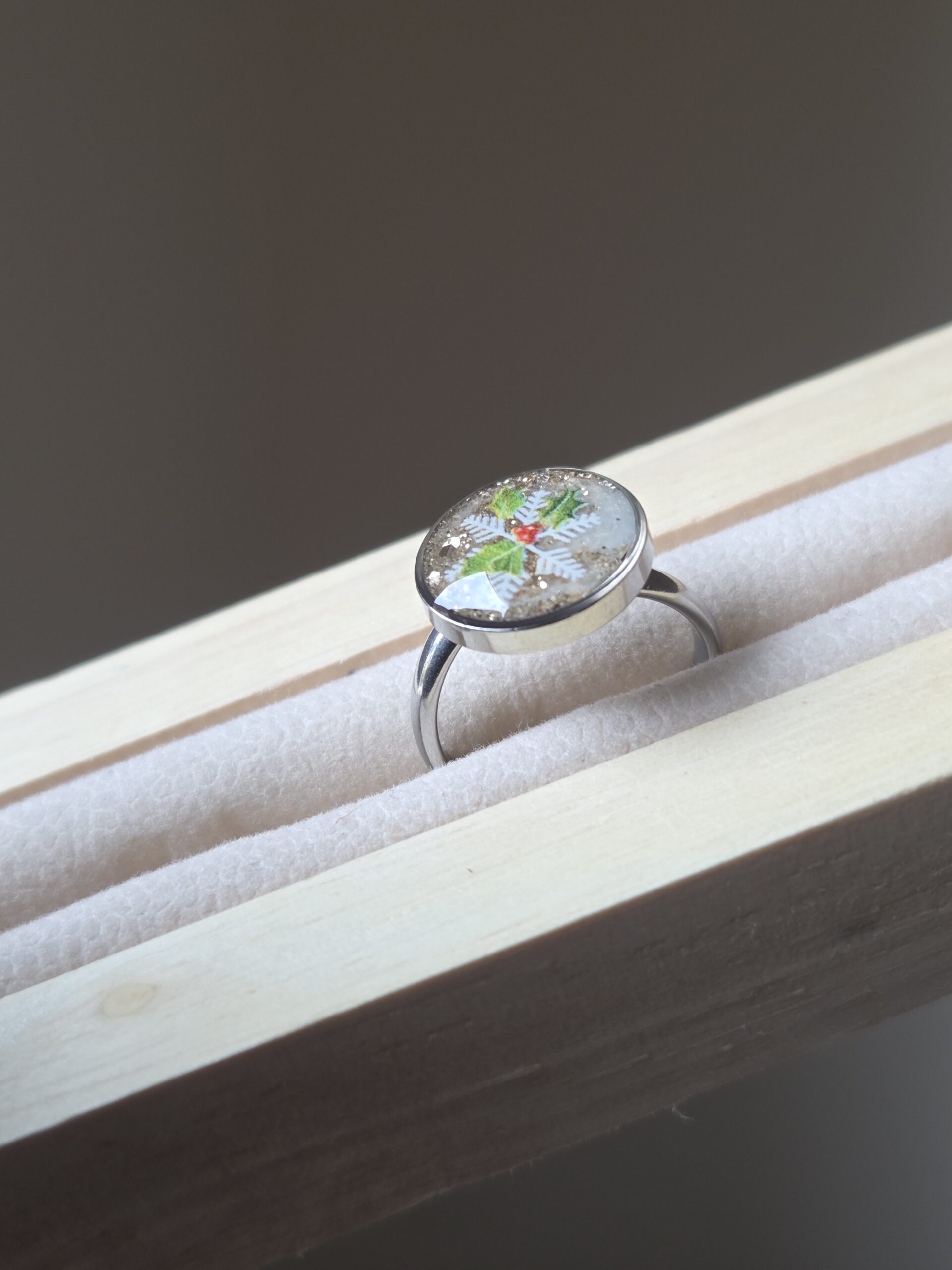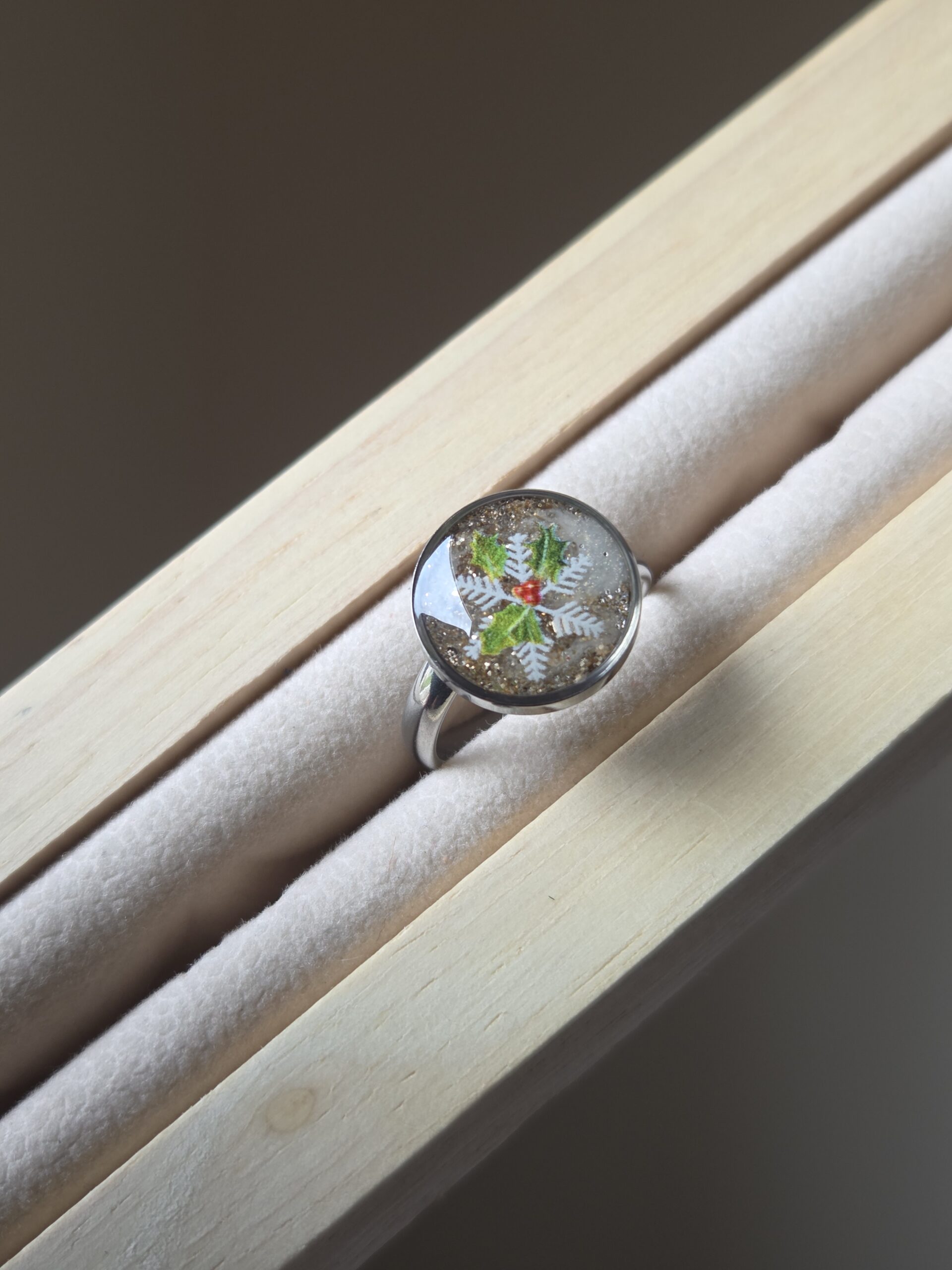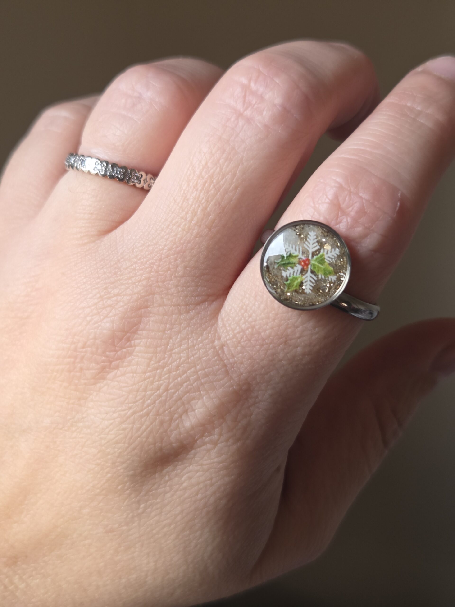 ❄️ Bague “Flocon & Houx” – L’élégance scintillante de Noël 🎄✨