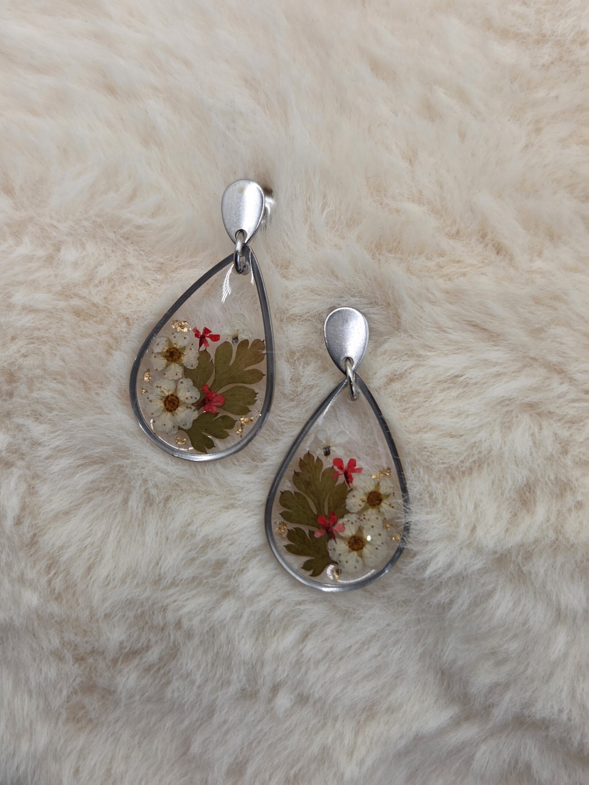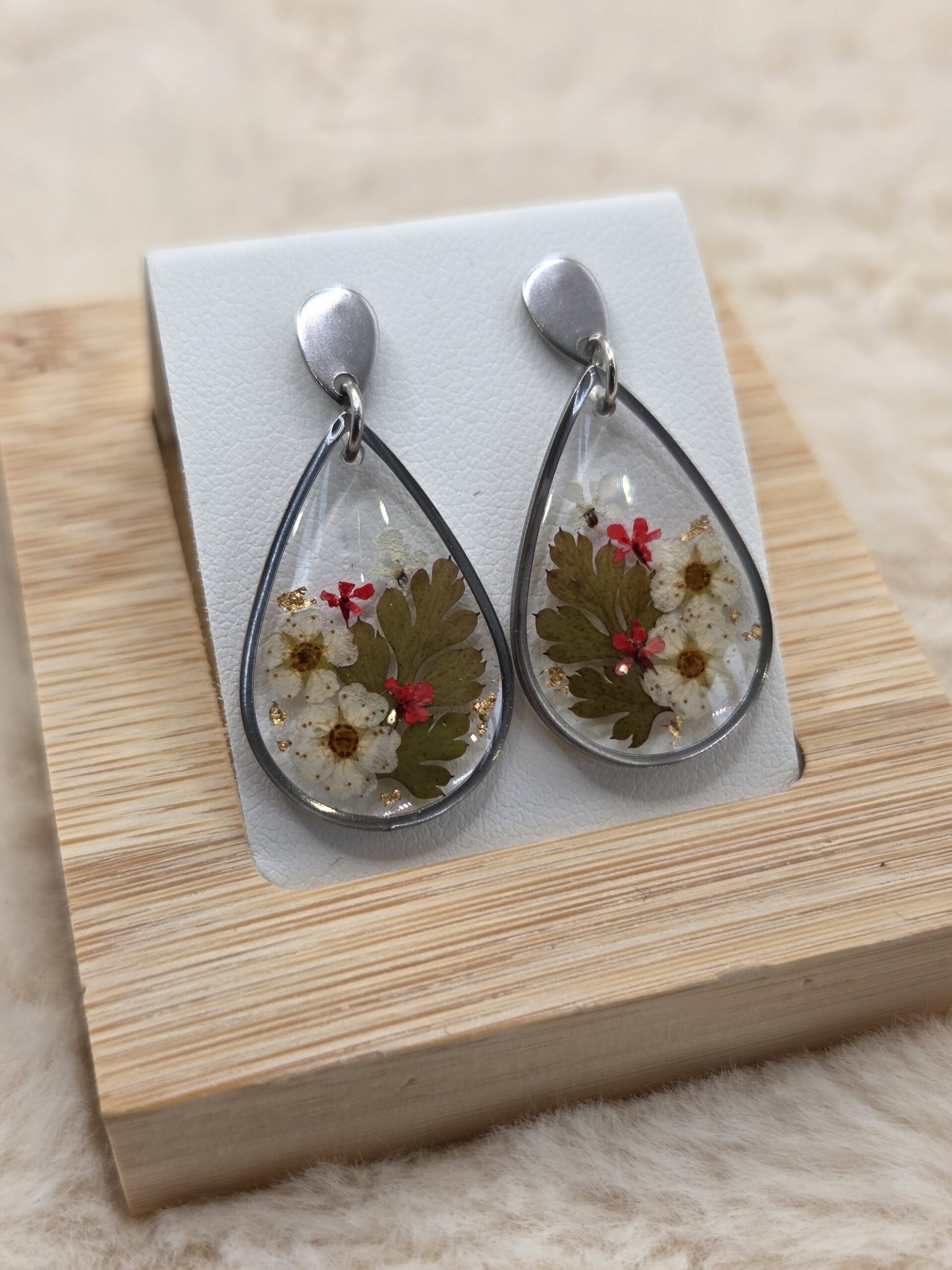 🌸✨ Boucles d’oreilles goutte – Fleurs séchées & acier inoxydable