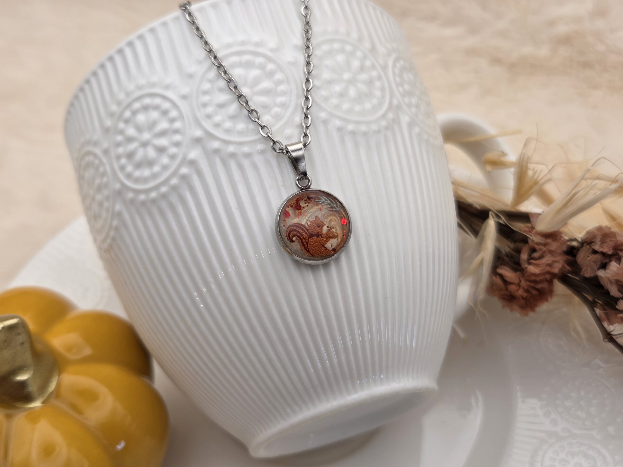 Apportez une touche chaleureuse et ludique à votre style avec ce pendentif automnal unique ! 🐿️🍂
