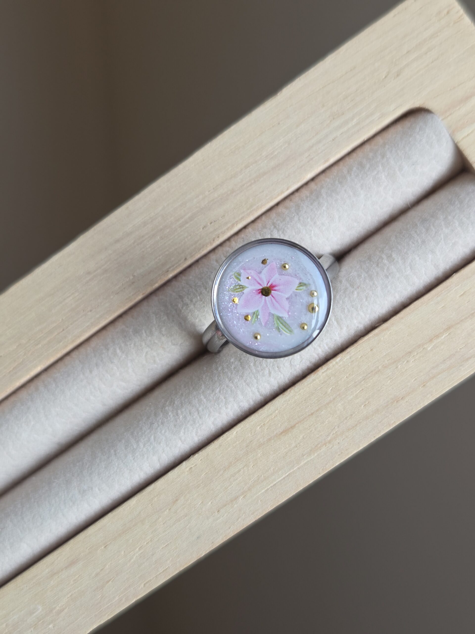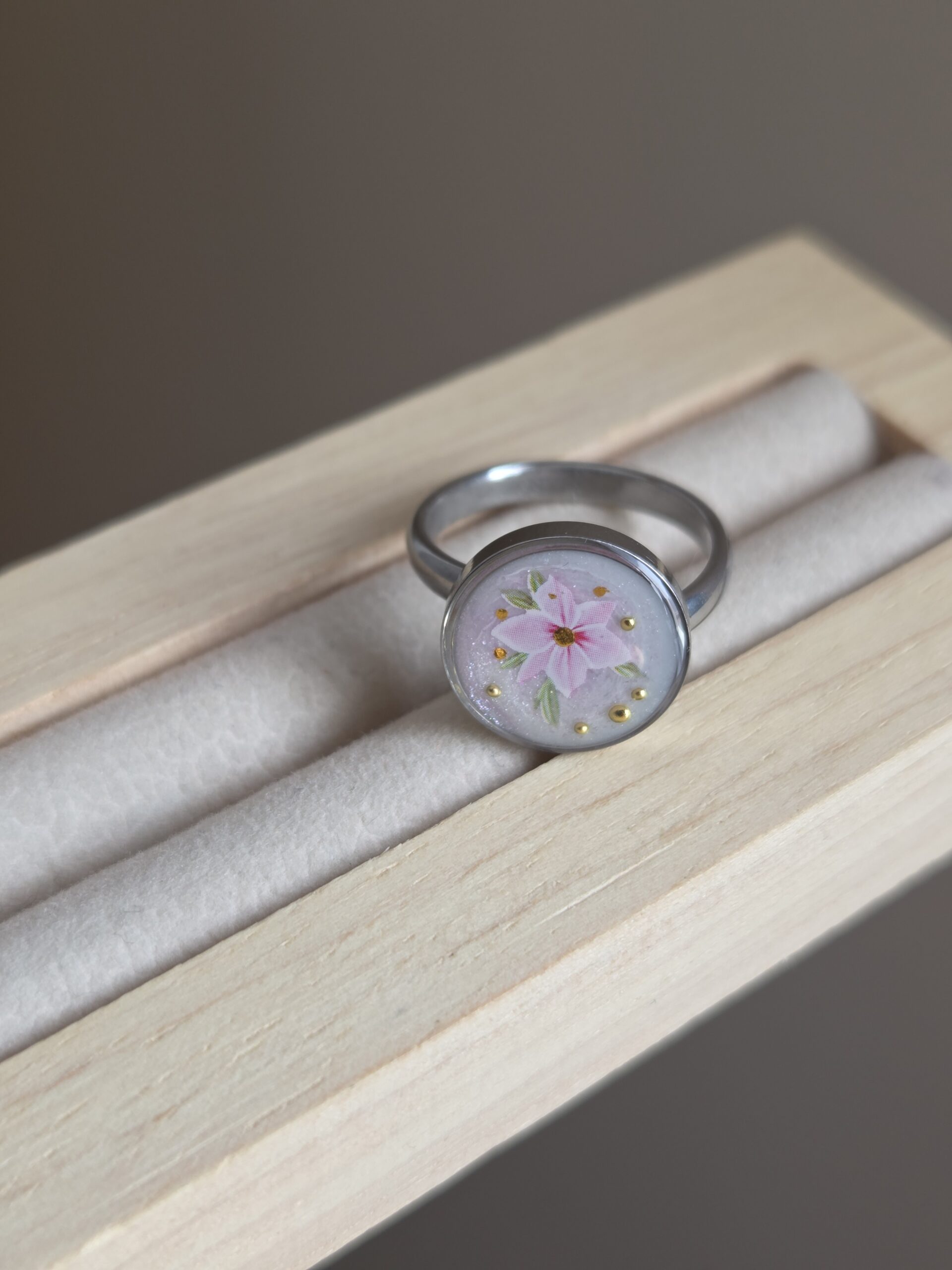 Cette bague ajustable en acier inoxydable sâadapte facilement Ă votre doigt pour un confort optimal đ€. Son cabochon rond met en valeur une composition subtile et raffinĂ©e, protĂ©gĂ©e sous rĂ©sine pour un bel effet de profondeur âš.